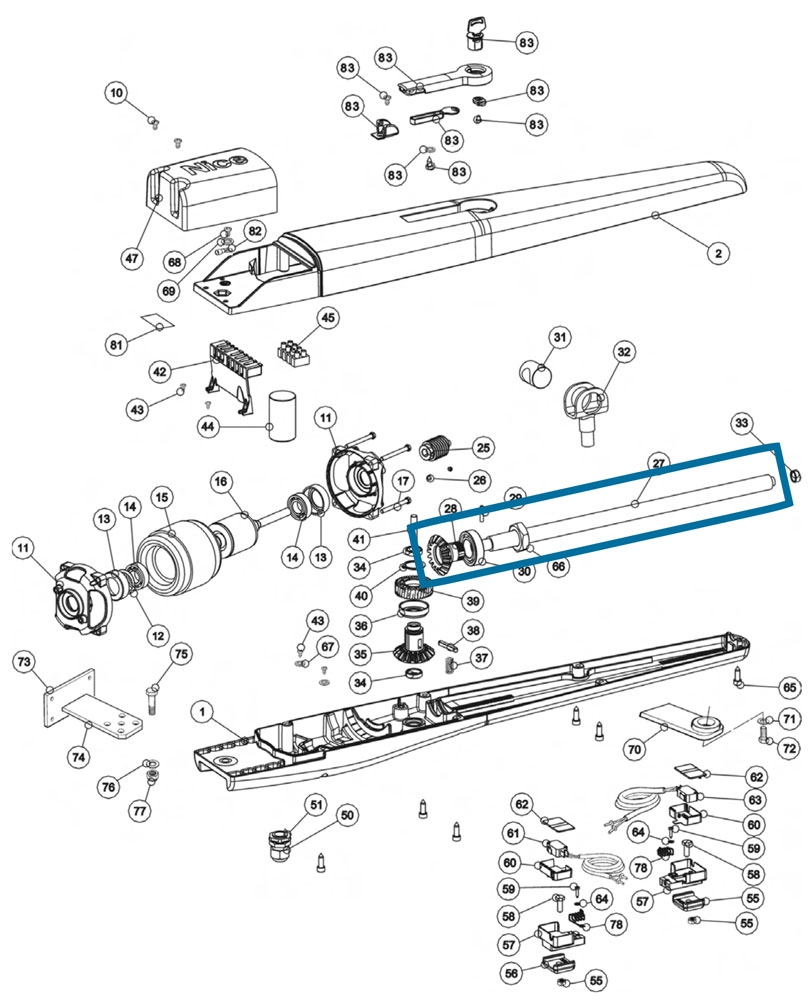 Nell'immagine seguente puoi trovare le parti del pezzo di ricambio PRTO02 del motore NICE TOONA.